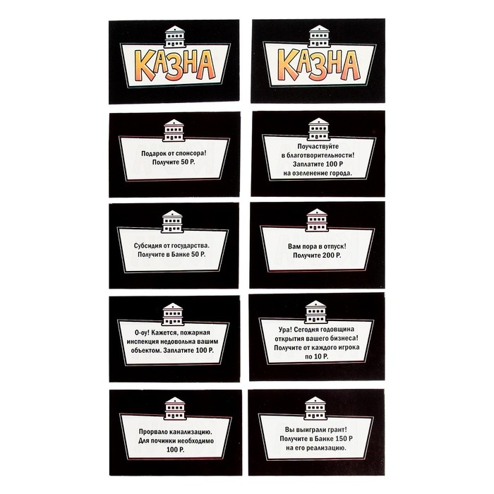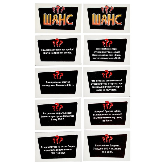 - Выложите карточки «Шанс» и «Казна» на поле рубашкой вверх.