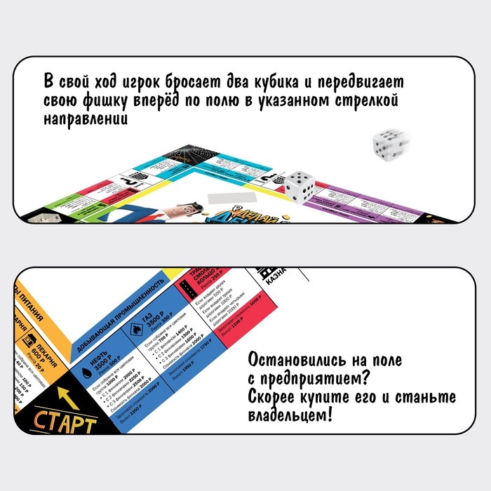С настольной экономической игрой-бродилкой «Делай деньги» вы создадите собственную бизнес-империю! Покупайте недвижимость, зарабатывайте деньги и преумножайте капитал. Ну а кто станет банкротом, а кто — владельцем прибыльного дела, покажет игра!