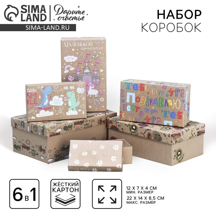 Набор коробок 6 в 1, упаковка подарочная, «Детский », 12 х 7 х 4 ‒ 22 х 14 х 8.5 см