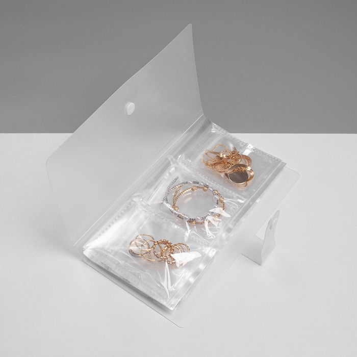 Пластиковый органайзер в виде книжки с листами и специальными отсеками предназначен для хранения украшений и аксессуаров. С помощью такого альбома также удобно демонстрировать мелкие вещи — в прозрачных пакетиках их будет хорошо видно. В наборе 30 пакетов-вкладышей.