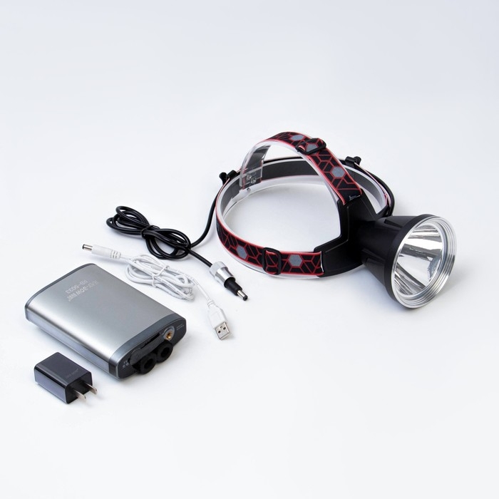 Фонарь налобный аккумуляторный, 10000 мАч, 30 Вт, 1600 лм, P90, USB, 12 часов работы