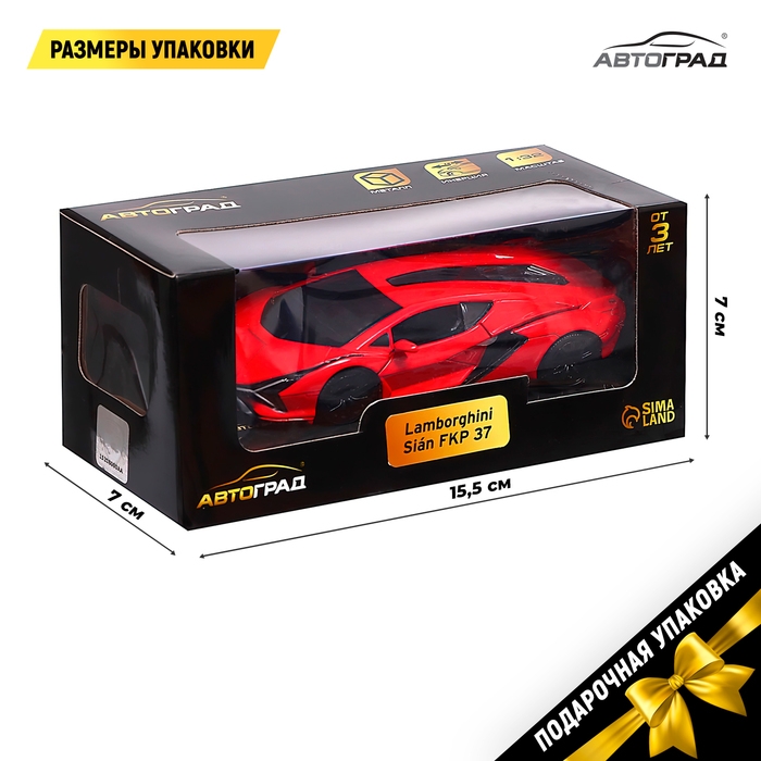 Машина металлическая LAMBORGHINI Sian FKP 37, 1:32, открываются двери, инерция, цвет красный