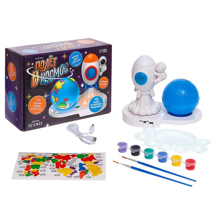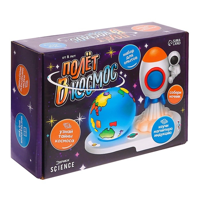 С набором для опытов «Полёт в космос» ребёнок соберёт необычный ночник, который работает от магнитной индукции!