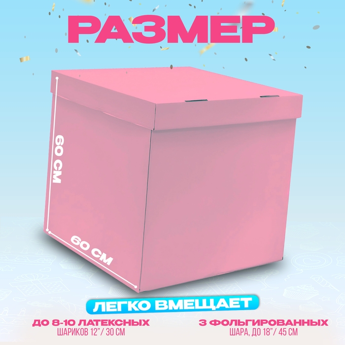 Коробка 60х60х60 см, розовая, с крышкой, 1шт.