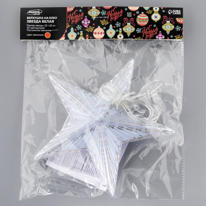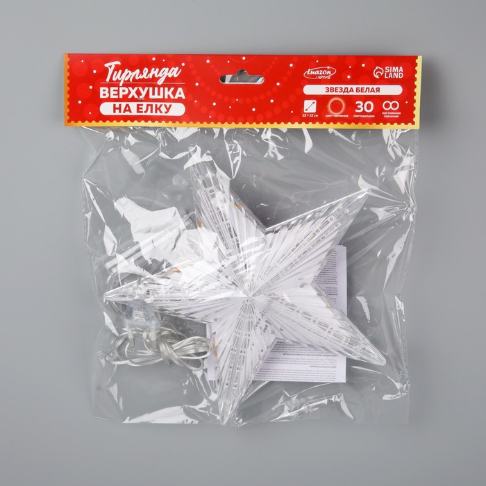 Светодиодная верхушка на ёлку «Звезда белая» 22 см, 30 LED, провод 2 метра, 220 В, свечение красное