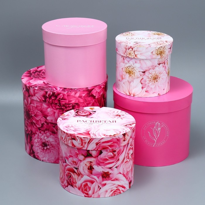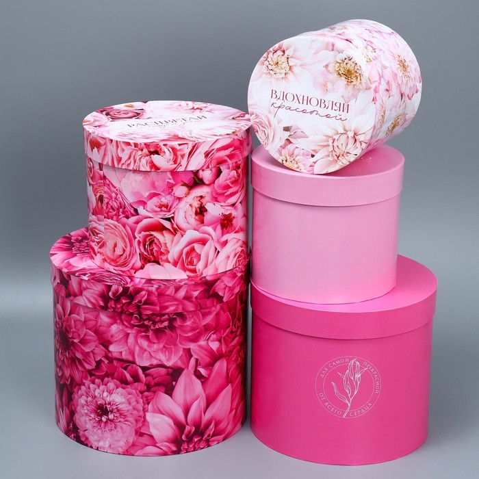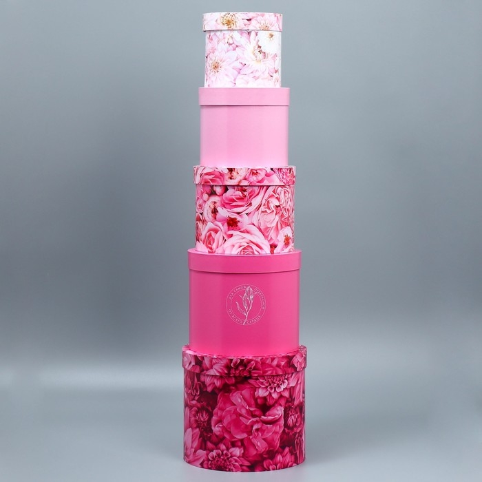 Набор шляпных коробок 5 в 1, упаковка подарочная, «Цветы», 13 х 14 ‒ 19.5 х 22 см