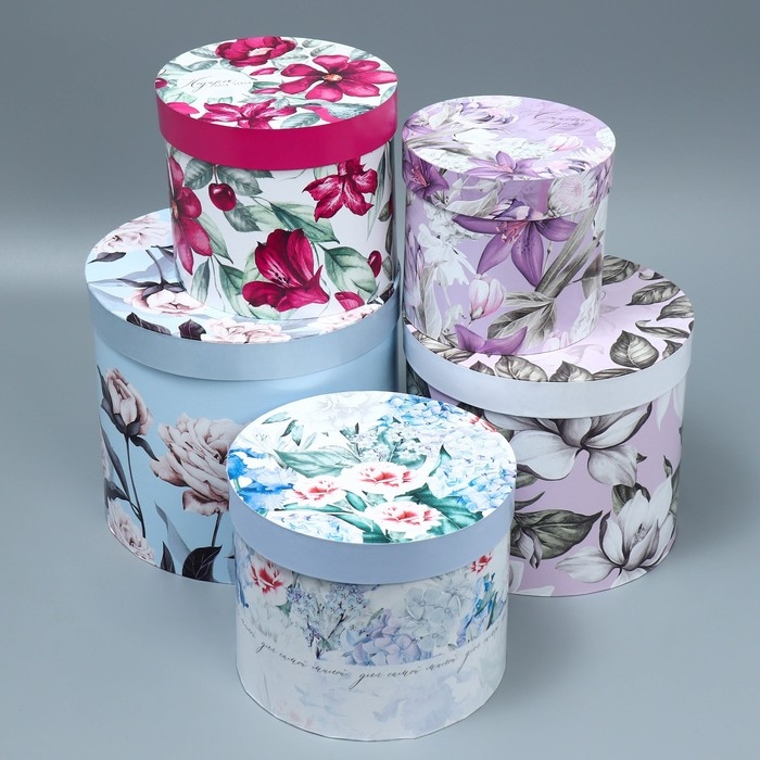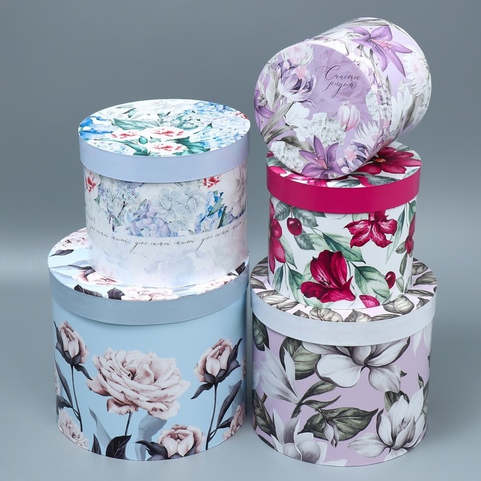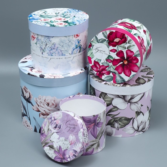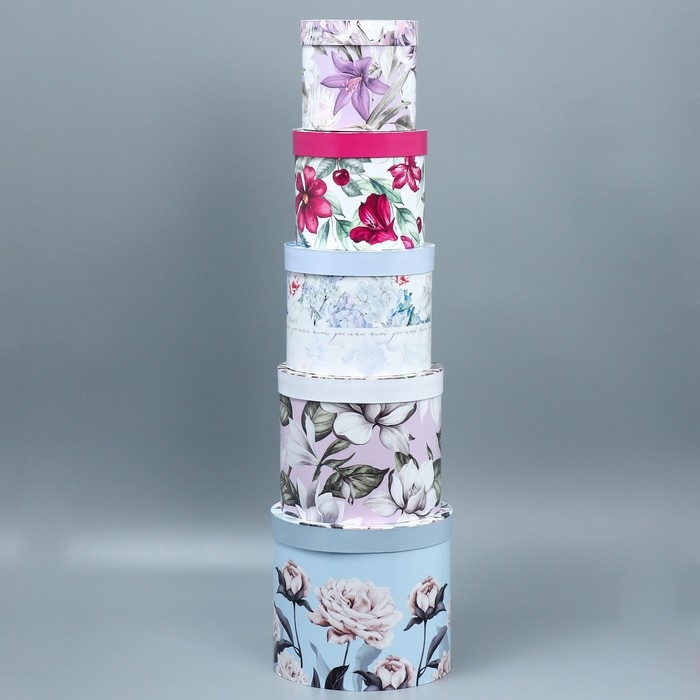 Набор шляпных коробок 5 в 1, упаковка подарочная, «Цветочный сад», 13 х 14 ‒ 19.5 х 22 см