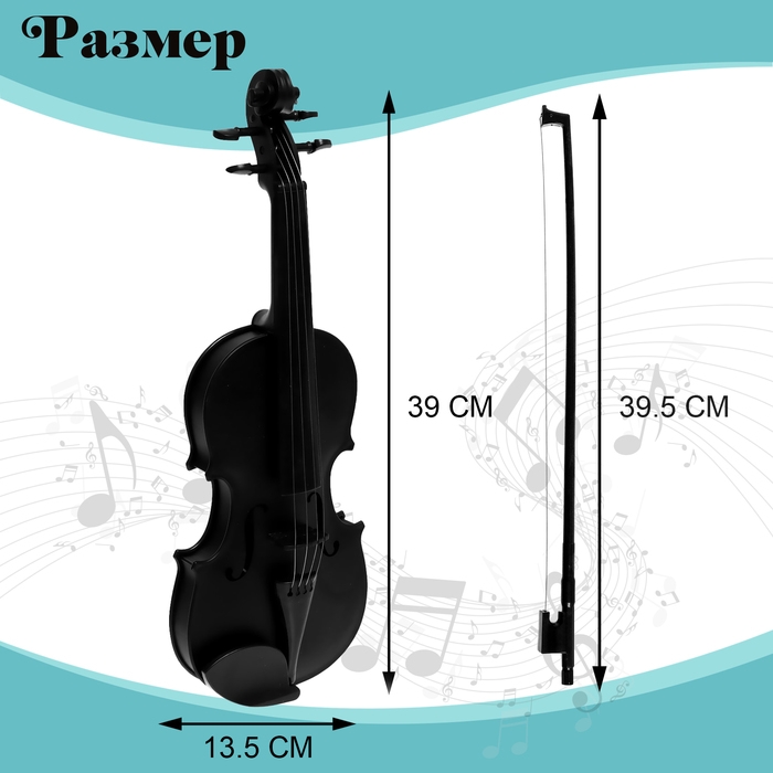 - Размер скрипки: 39 × 13,5 × 6,5 см.
