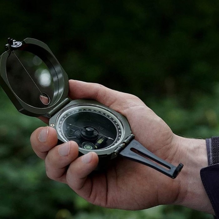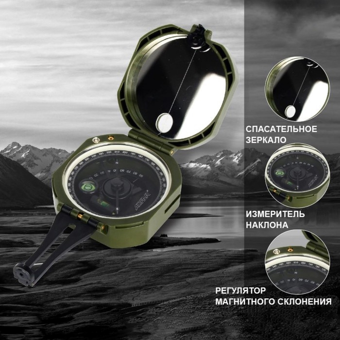 С горизонтальным лимбом, С крышкой, С линией прицеливания, С уровнем, С четким определением позиции, Со спасательным зеркалом