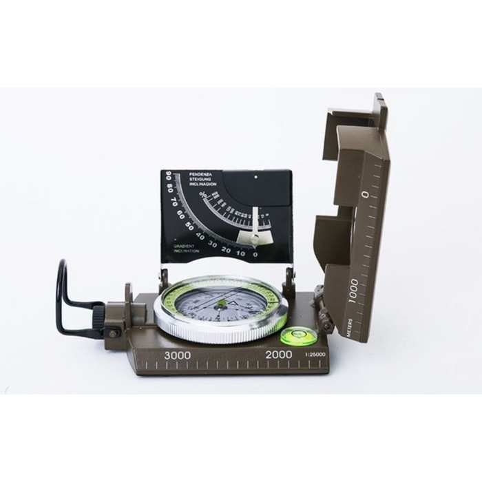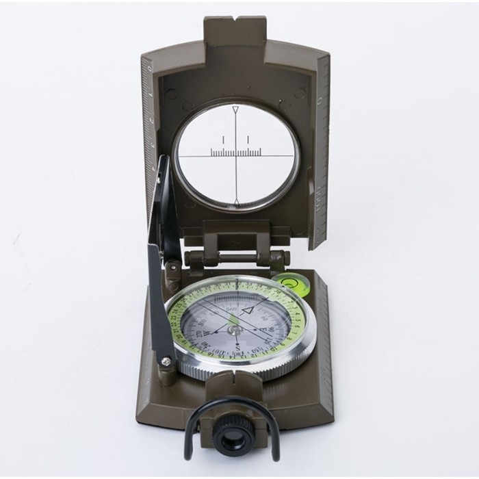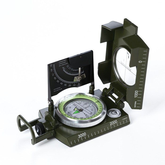 С градиометром, С крышкой, С линией прицеливания, С лупой, С определением угла наклона, С оптическим прицелом, С сантиметровой линейкой, С уровнем, С флуоресцентным циферблатом, С четким определением позиции