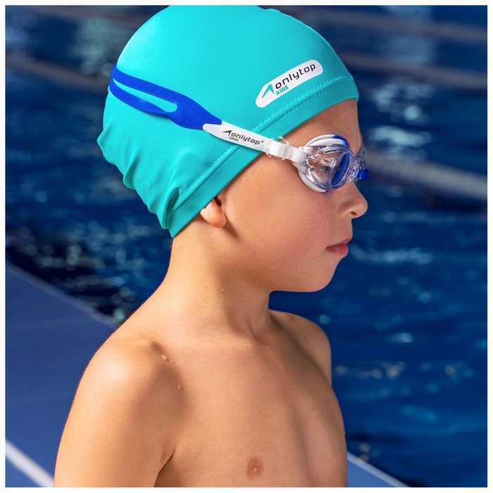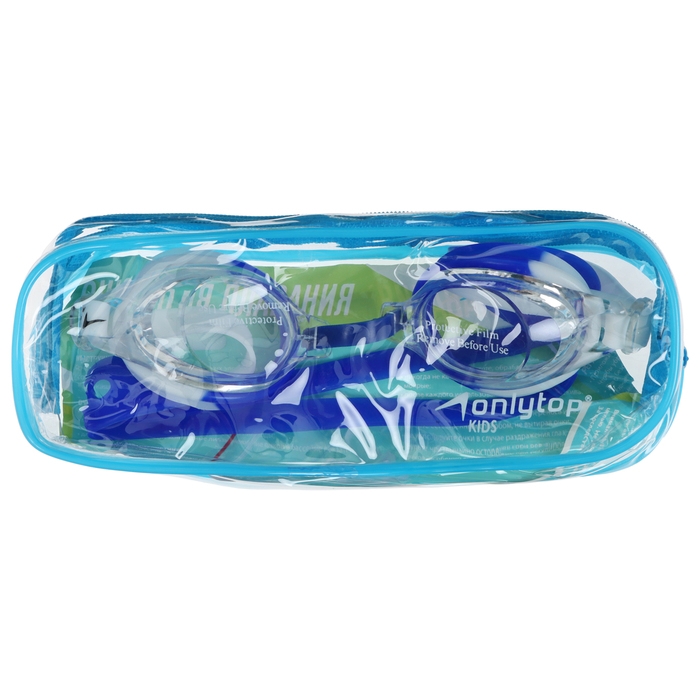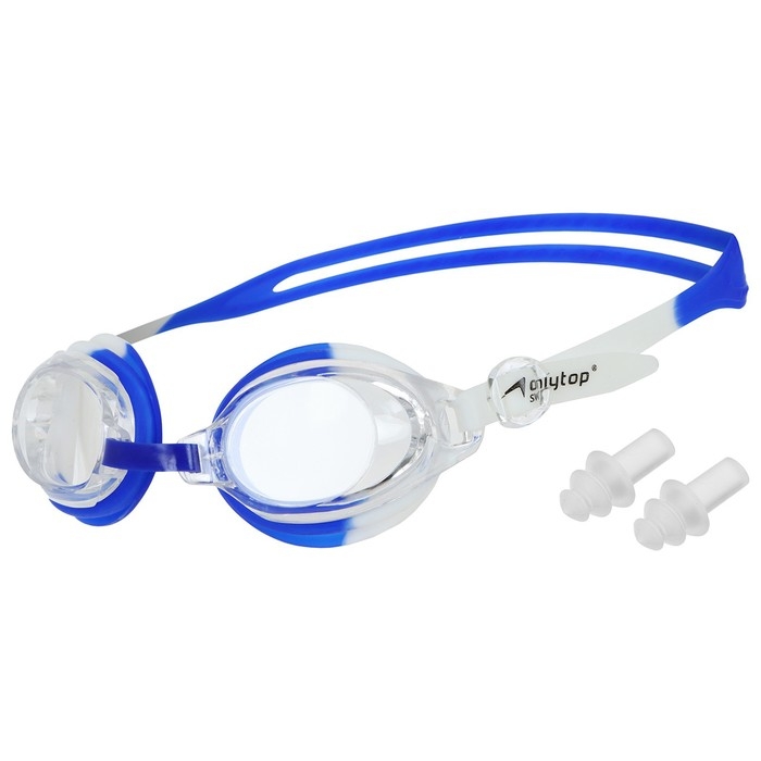 Очки для плавания детские ONLYTOP, беруши, цвет белый/синий