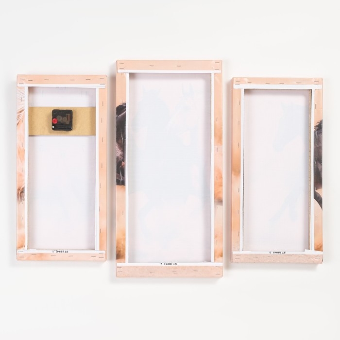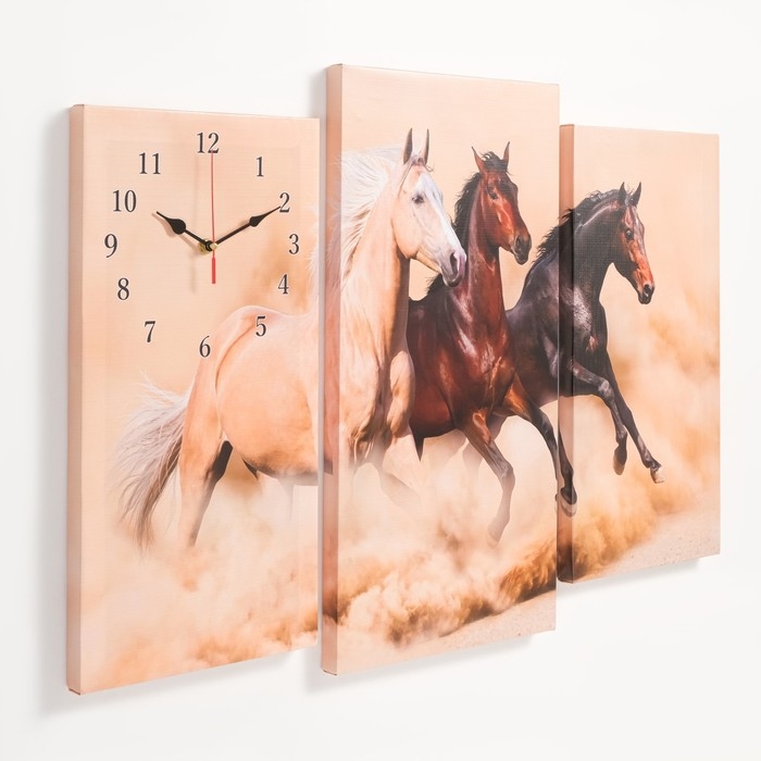 Часы-картина настенные, модульные "Лошади", бесшумные, 60 х 80 см, триптих