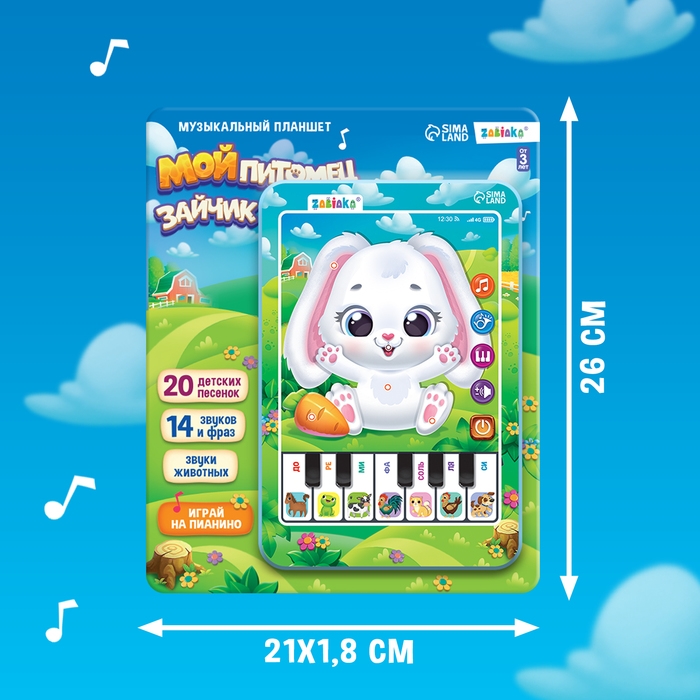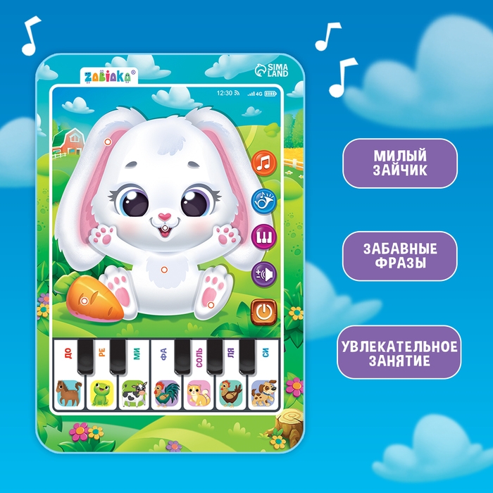 Музыкальный планшет «Зайчик» привлечёт внимание трогательным дизайном и надолго займёт малыша благодаря множеству полезных функций. Игрушка не только развлечёт ребёнка — с ней можно осваивать новые навыки!