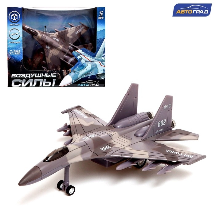 Истребитель металлический «Воздушные силы», инерционный, световые и звуковые эффекты, цвет коричневый