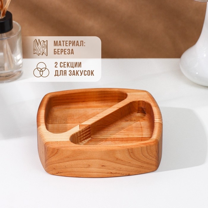 Менажница деревянная глубокая Adelica, 2 секции, береза, 15×15×4 см