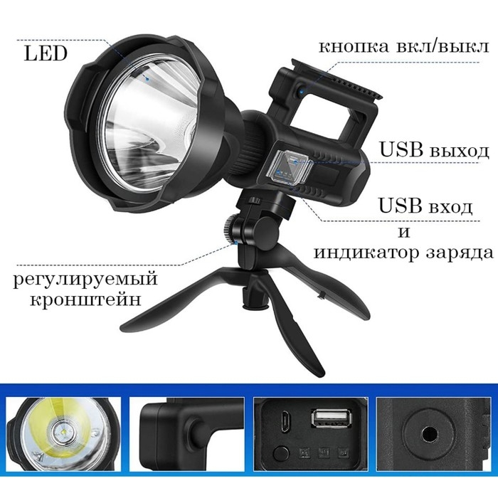 Фонарь прожекторный аккумуляторный, 40 Вт, 8000 мАч, 1200 лм, P50, USB, 4 режима, 27 х 12 см