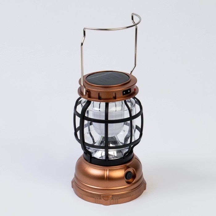 Фонарь кемпинговый аккумуляторный, солнечная батарея, 12 х 13.5 см, от USB, чёрный