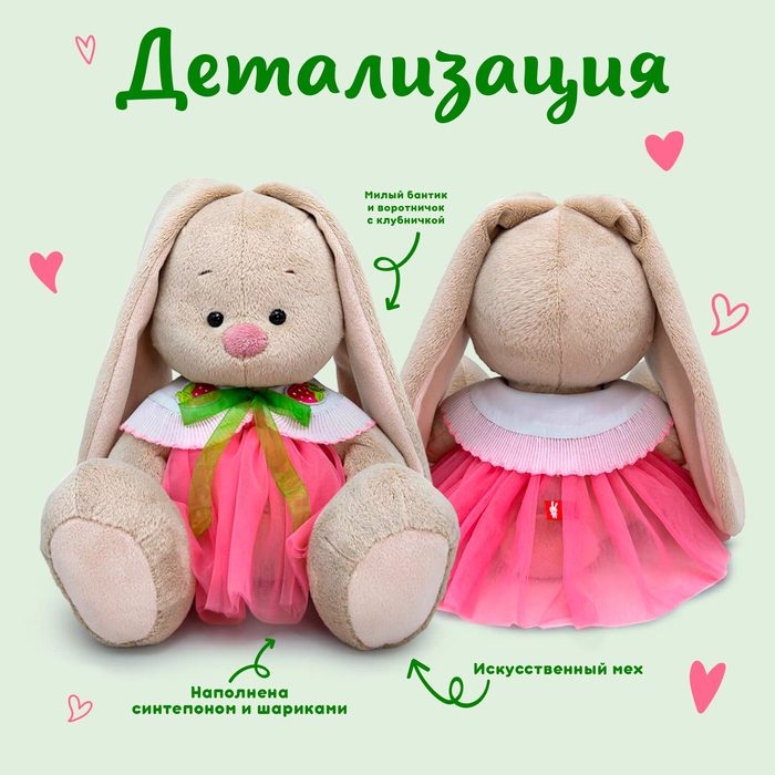 Мягкая игрушка «Зайка Ми», в юбке и воротнике с клубничками, 18 см