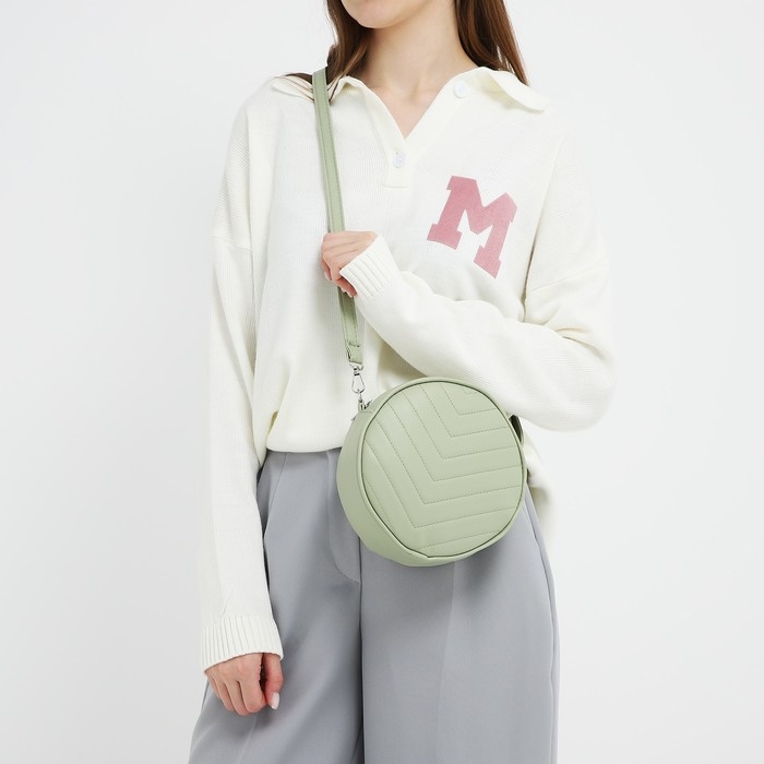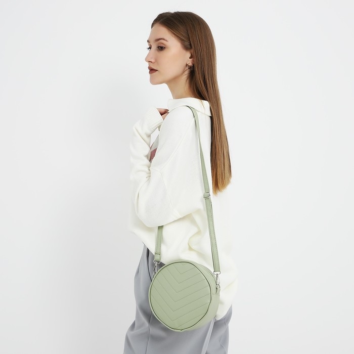 Сумка женская круглая из искусственной кожи, 18х18 см, цвет фисташковый