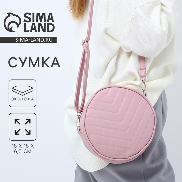 Сумка женская круглая из искусственной кожи, 18х18 см, цвет розовый
