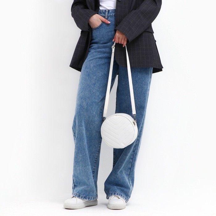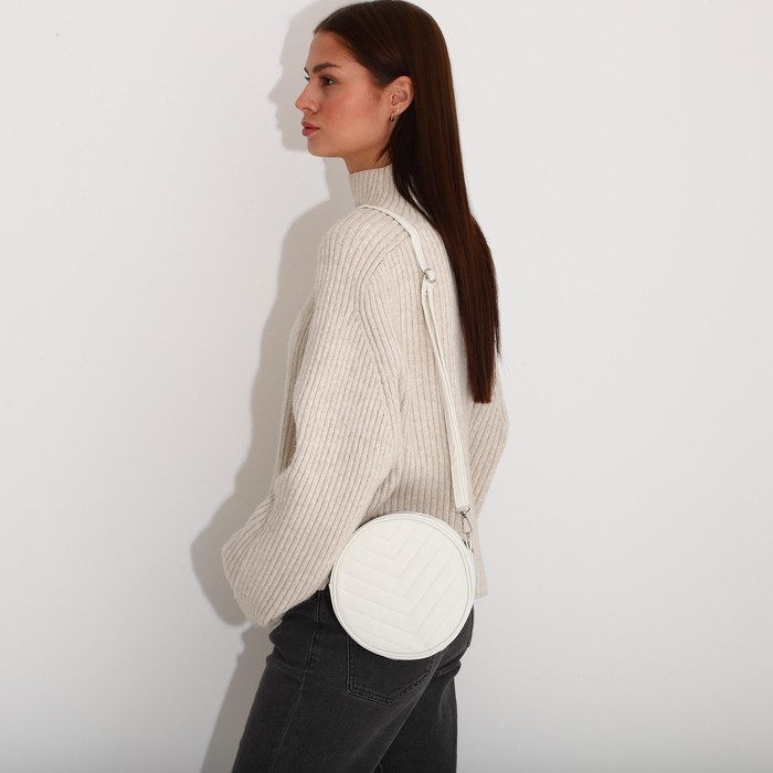 Сумка женская круглая из искусственной кожи, 18х18 см, цвет белый