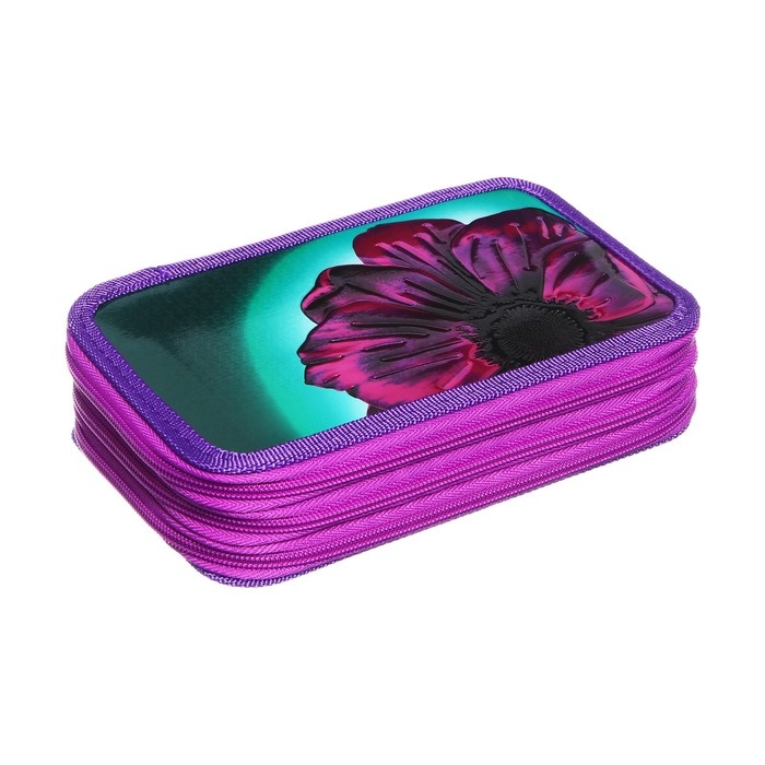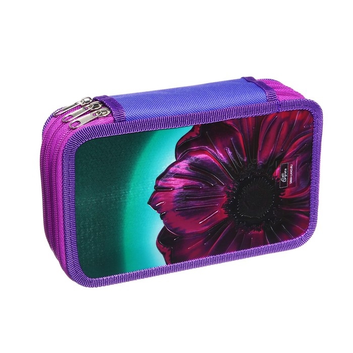 Пенал 3 секции, 125 х 205 х 55 мм, Calligrata 81П26/3 "Цветок", (объемный 3D-рисунок с эффектом металлика) ламинированный картон