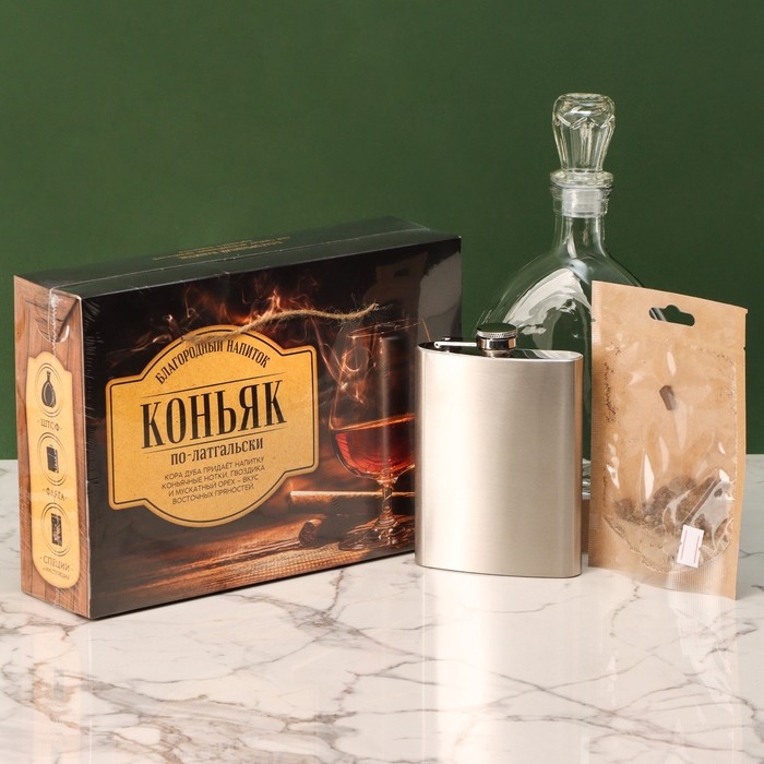 Набор для приготовления алкоголя «Коньяк»: набор трав и специй 22 г., штоф 500 мл., фляжка 240 мл., инструкция