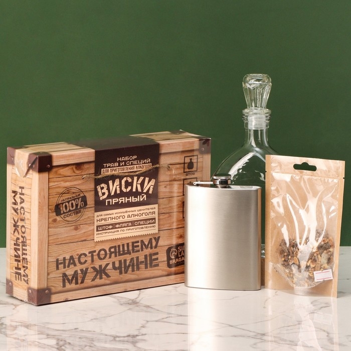 Набор для приготовления алкоголя «Виски»: травы и специи 19 г., штоф 500 мл., фляжка 240 мл., инструкция