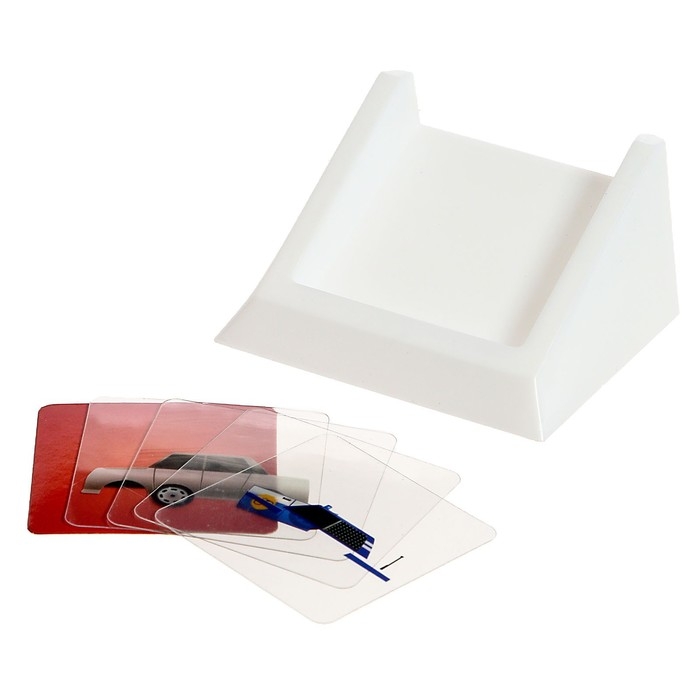 - Накладывайте пластиковые карточки с частями автомобилей друг на друга как на примере из задания, чтобы добиться с ним сходства.
