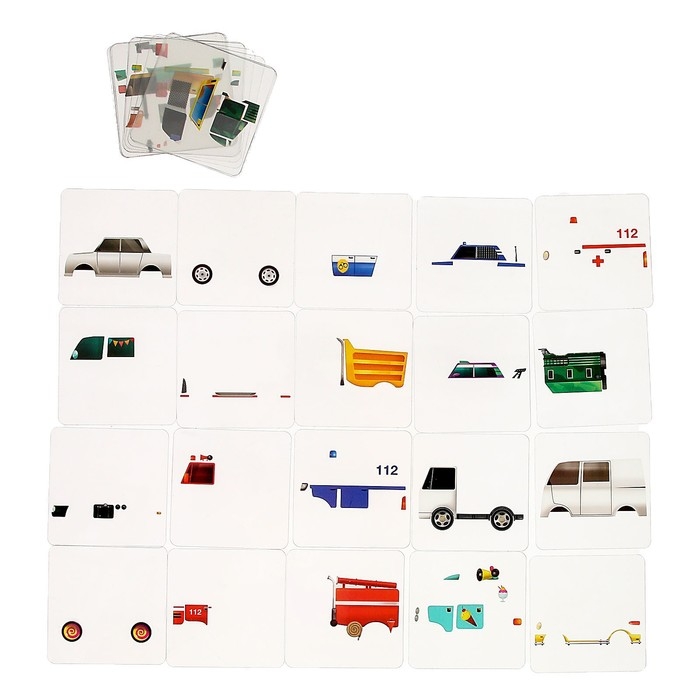 Станьте настоящим автомехаником в настольной игре «Машинки»! Накладывайте друг на друга карточки и собирайте полноценные автомобили! Проявляйте фантазию — собирать машины можно не только по специальным схемам сборки, но и придумывать свои!