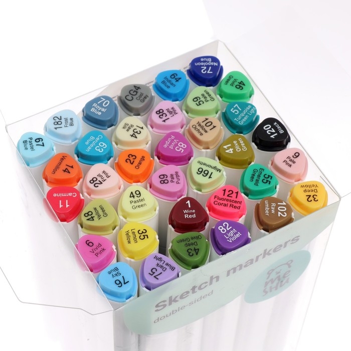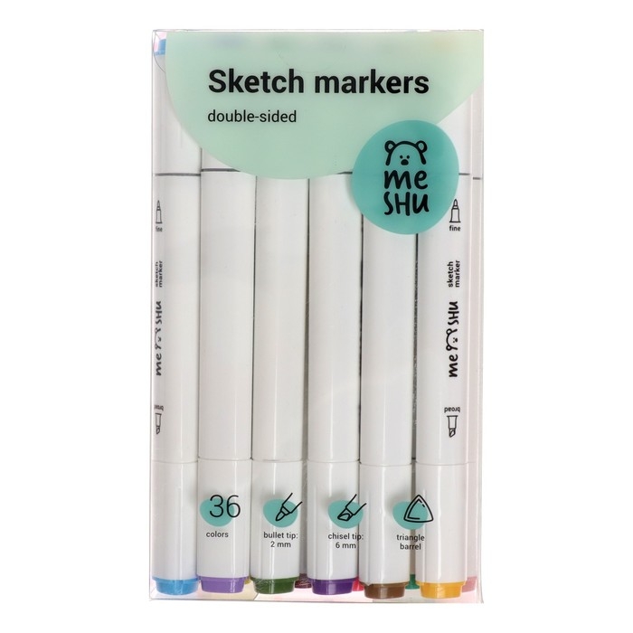 Маркеры для скетчинга двусторонние MESHU, 36 цветов (основные цвета)