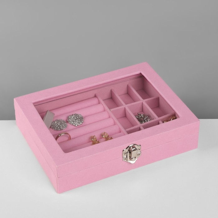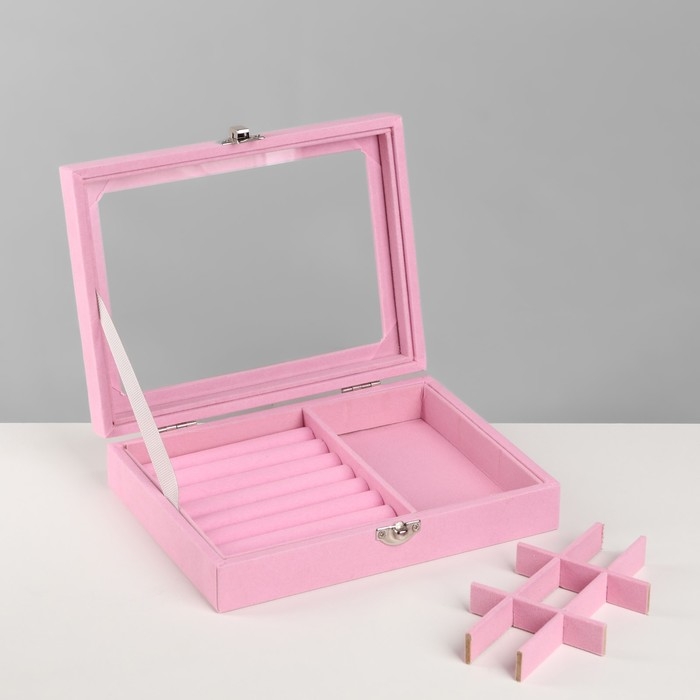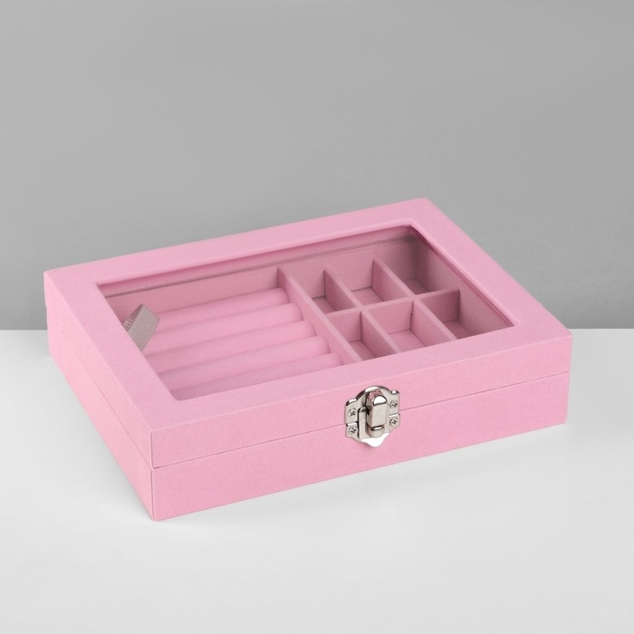 Подставка для украшений «Шкатулка», 7 полос, 9 ячеек, 20,5×15×5 см, цвет розовый