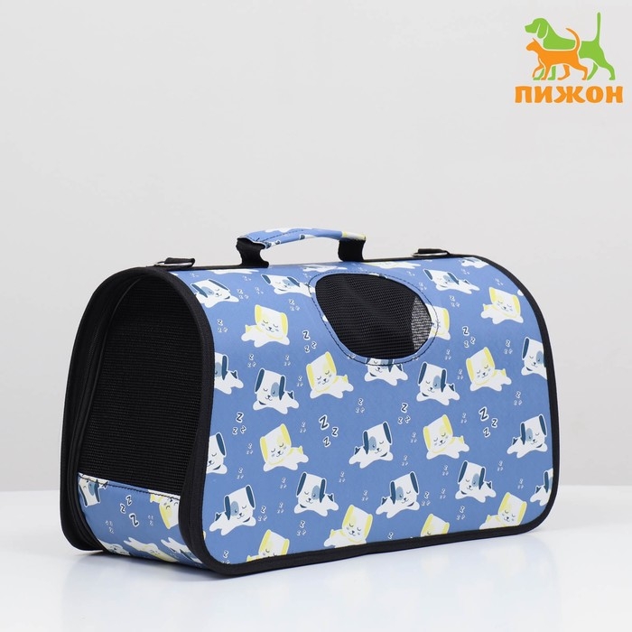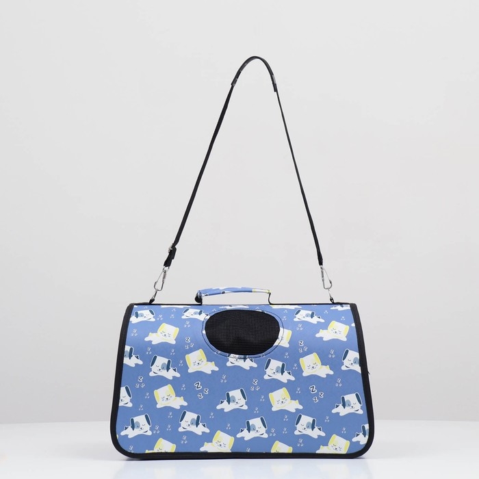 Сумка - переноска для животных"Сонный пёсик", каркасная, размер S, 37,5 х 17 х 22 см, голубая 697159