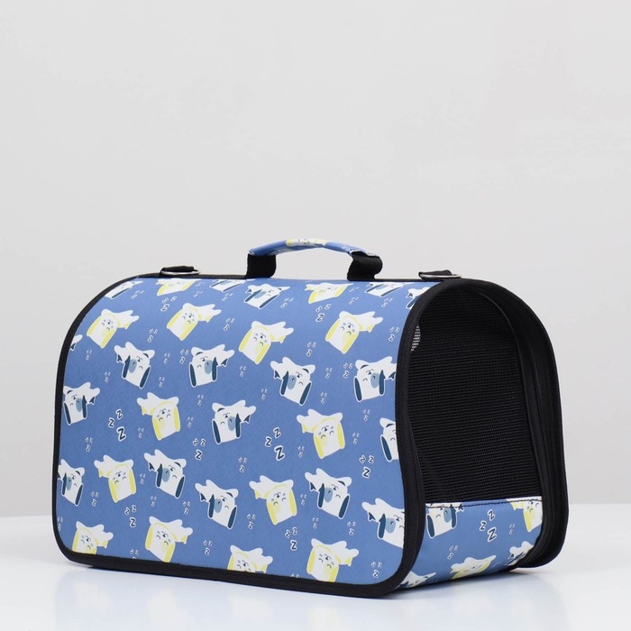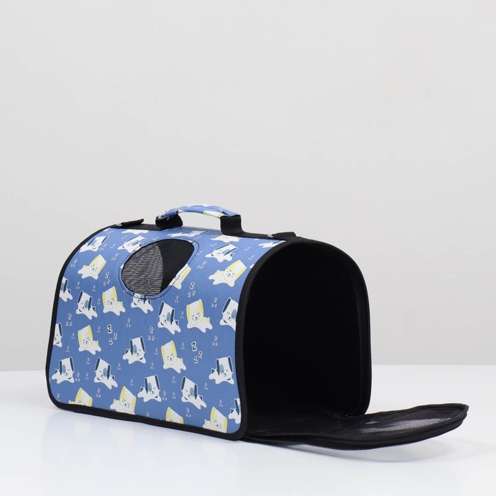 Сумка - переноска для животных "Сонный пёсик", каркасная, размер M, 40 х 21 х 27 см, голубая