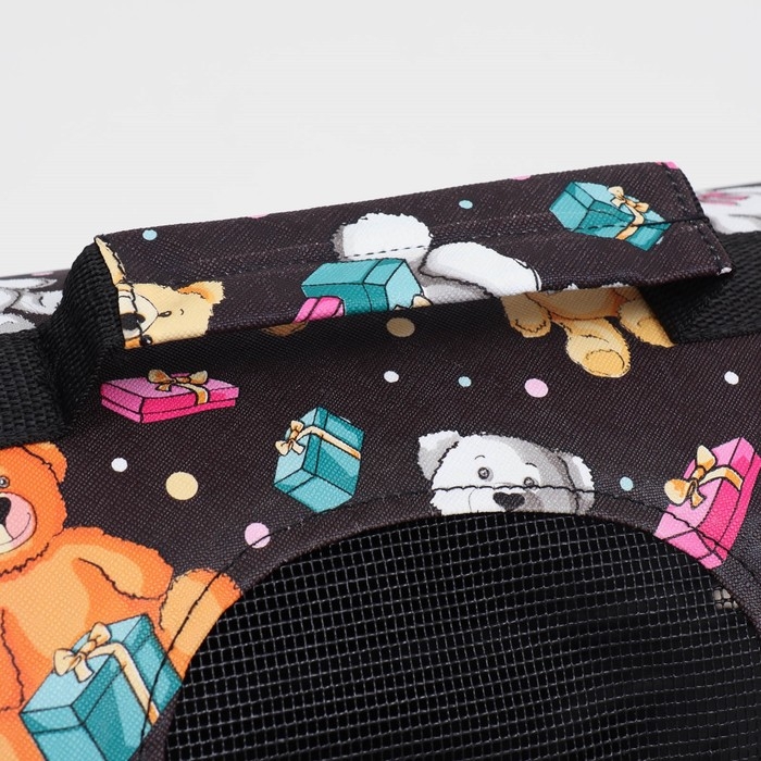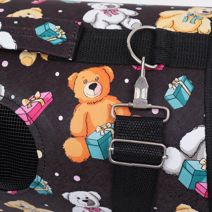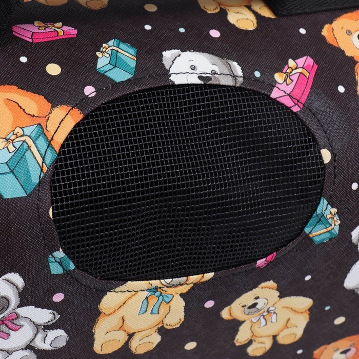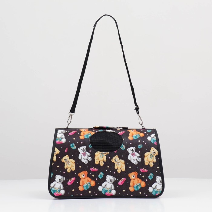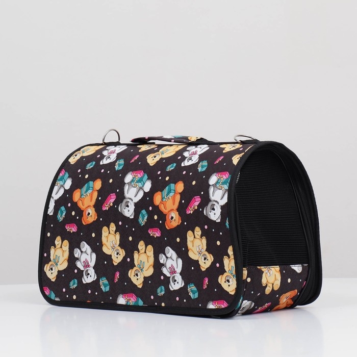 Сумка-переноска каркасная "Медведи на черном фоне", размер M, 40 х 21 х 27 см