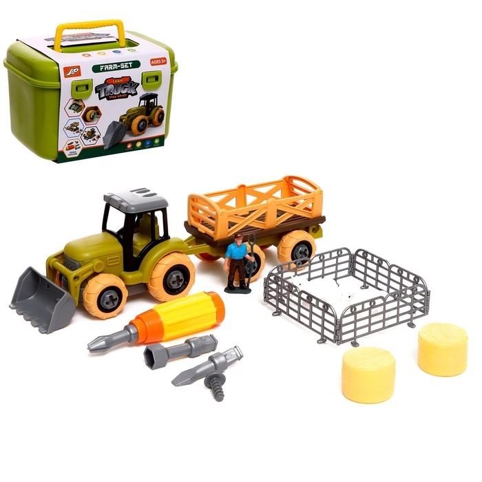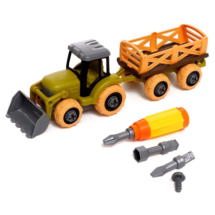 Конструктор винтовой «Трактор с прицепом», с отвёрткой, и аксессуарами