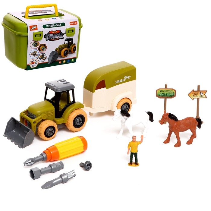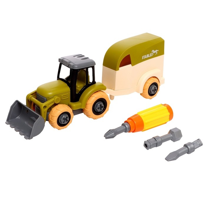 Конструктор винтовой «Трактор с коневозкой», с отвёрткой, и аксессуарами