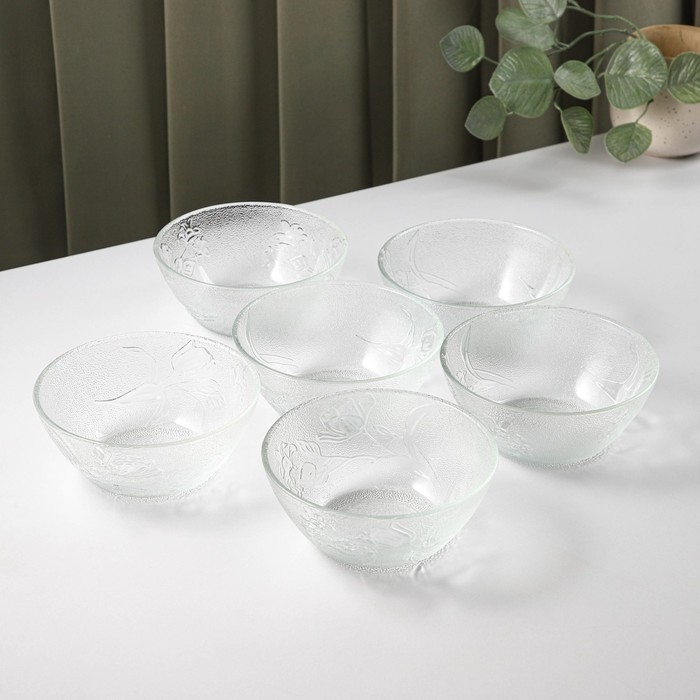 Набор стеклянных салатников на подставке «Вирго», 330 мл, d=12,5 см, 6 шт