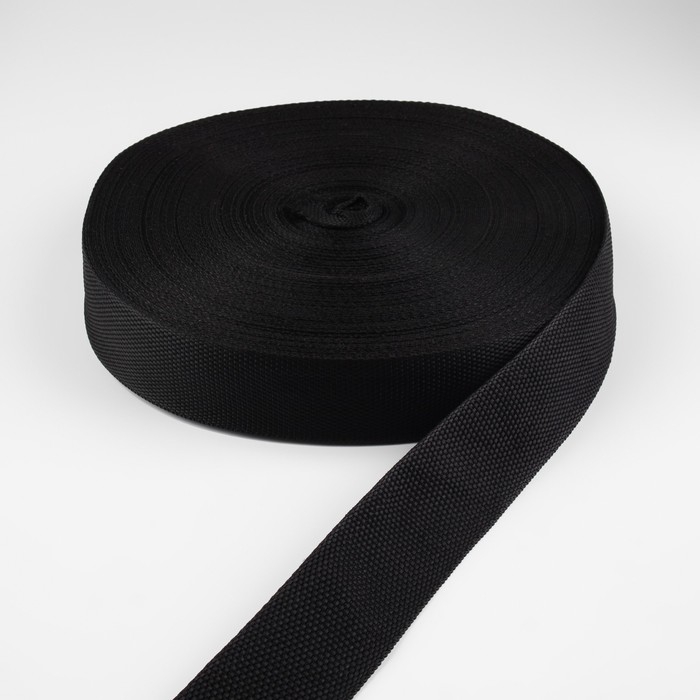 Стропа ременная, 25 мм, 50 ± 1 м, плотность 7,5 гр/м, цвет чёрный