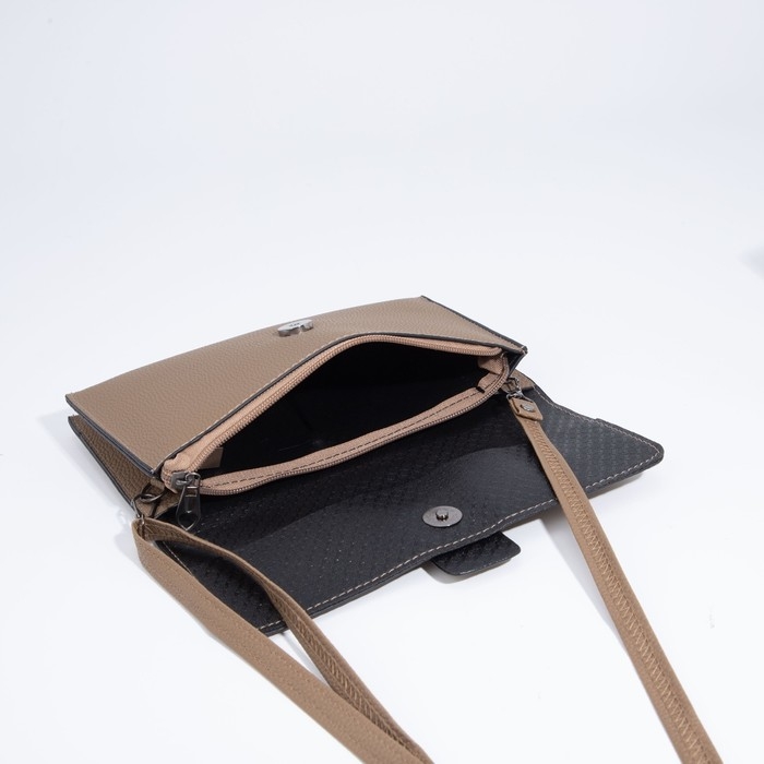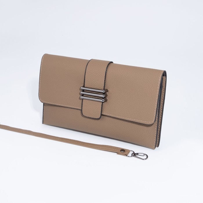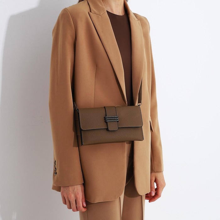 Сумка-клатч на магните, длинный ремень, цвет бежевый