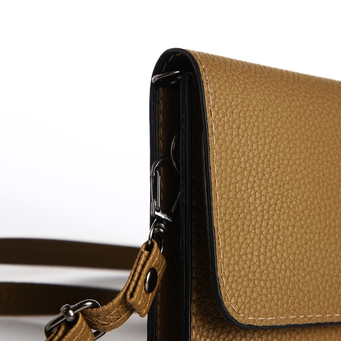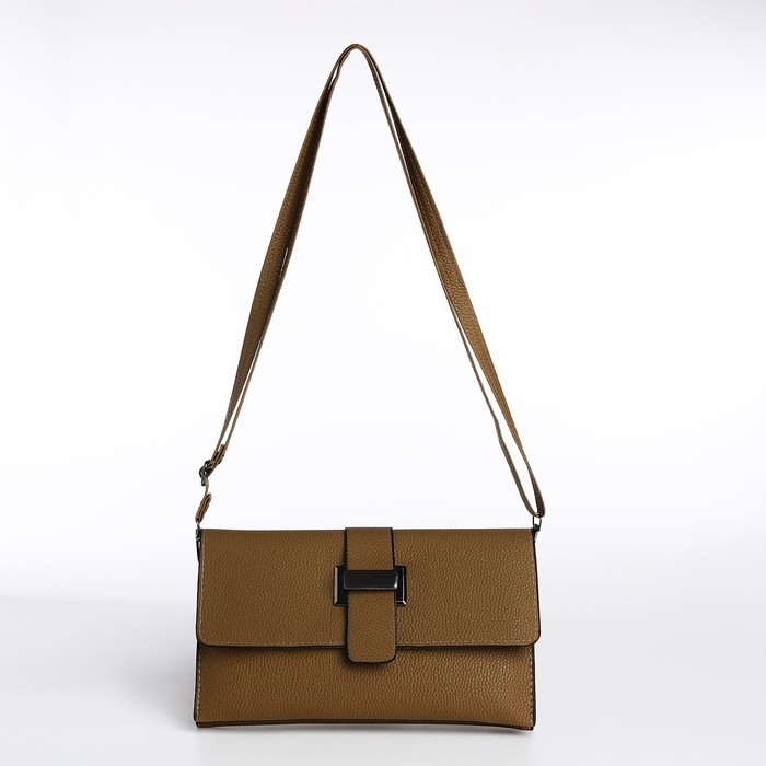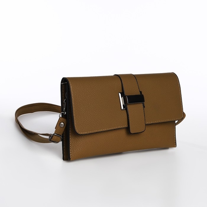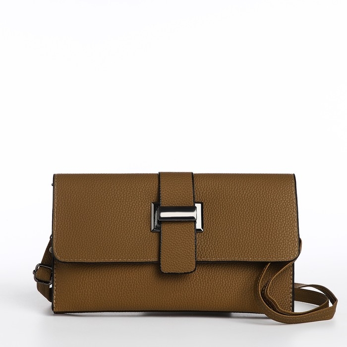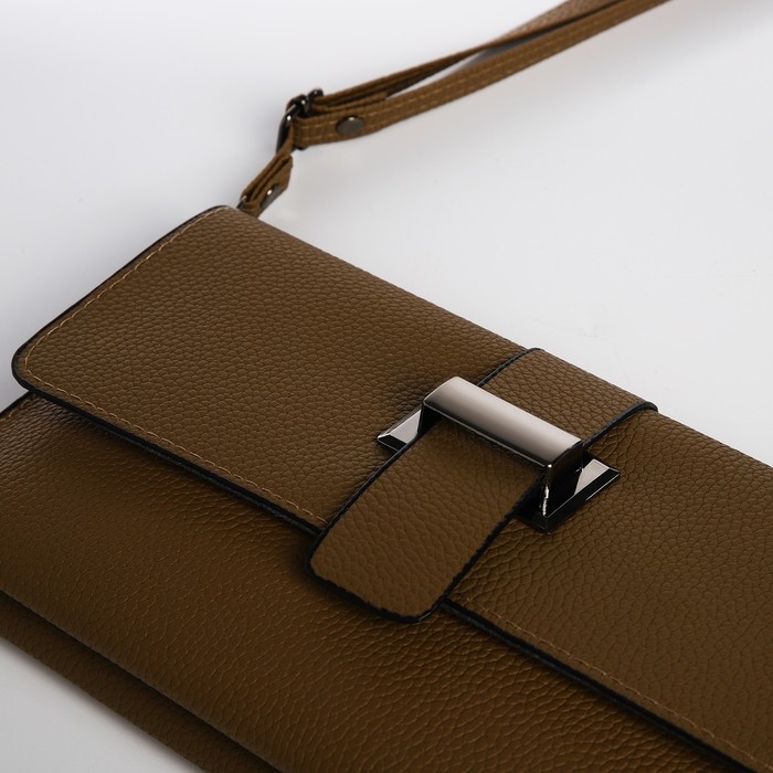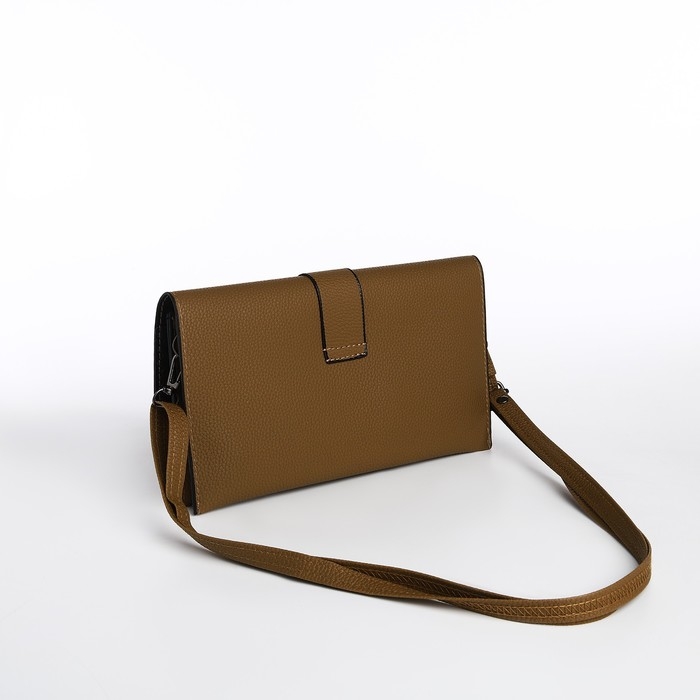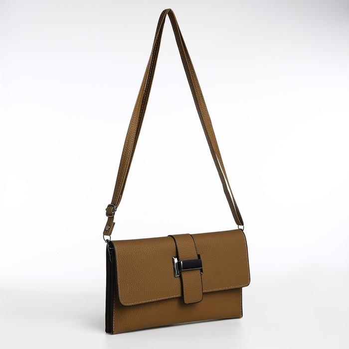 Сумка-клатч на магните, длинный ремень, цвет коричневый