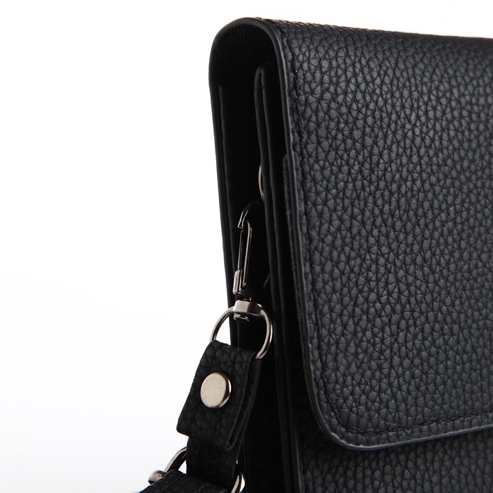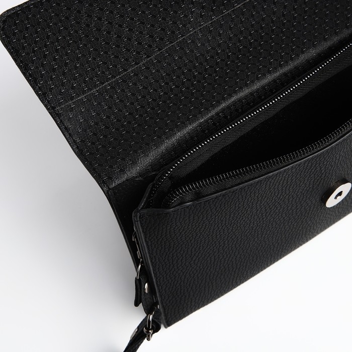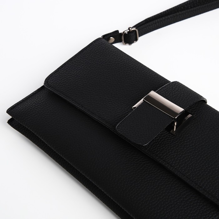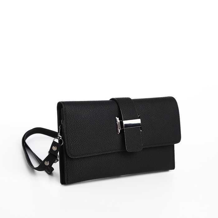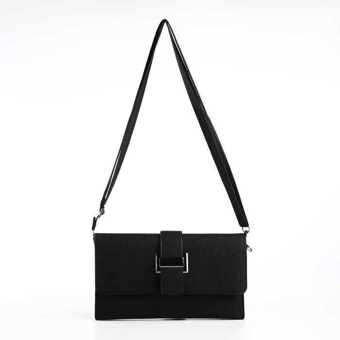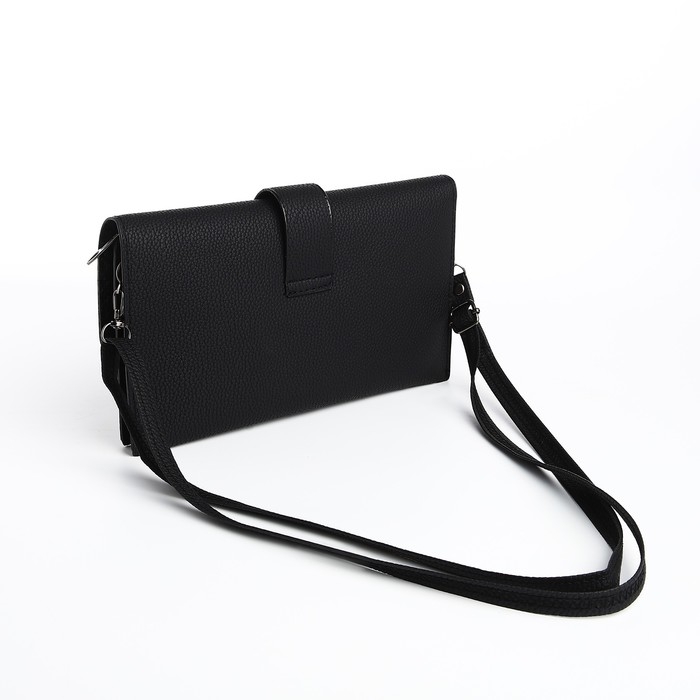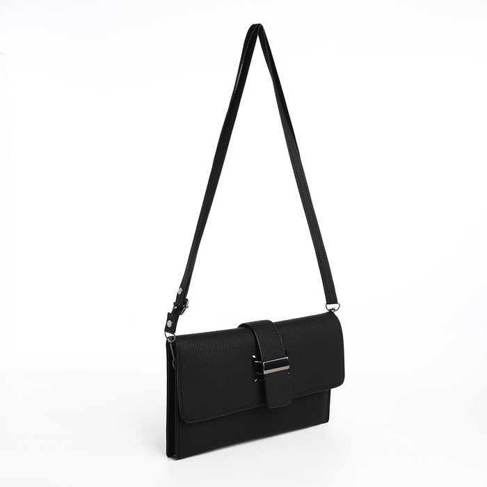 Сумка-клатч на магните, длинный ремень, цвет чёрный