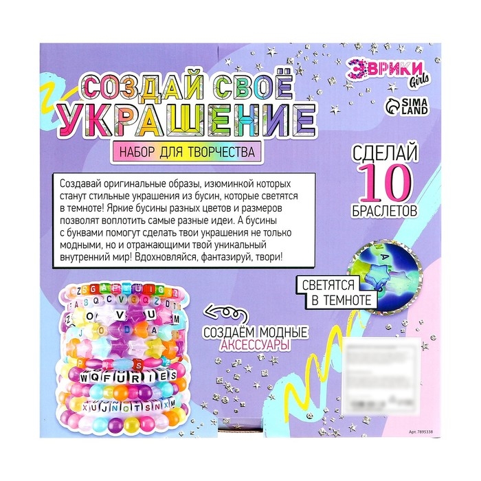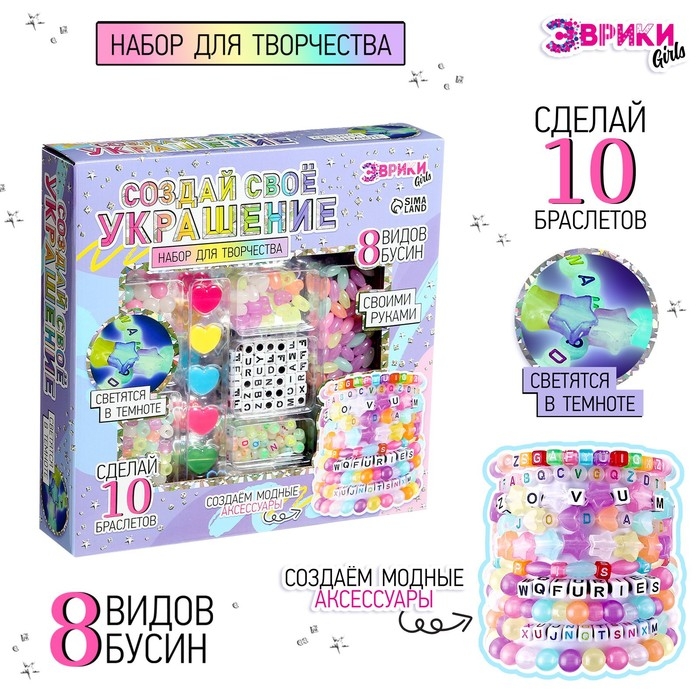 Набор для творчества «Создай своё украшение», светящиеся бусины, 10 браслетов, 8 видов бусин