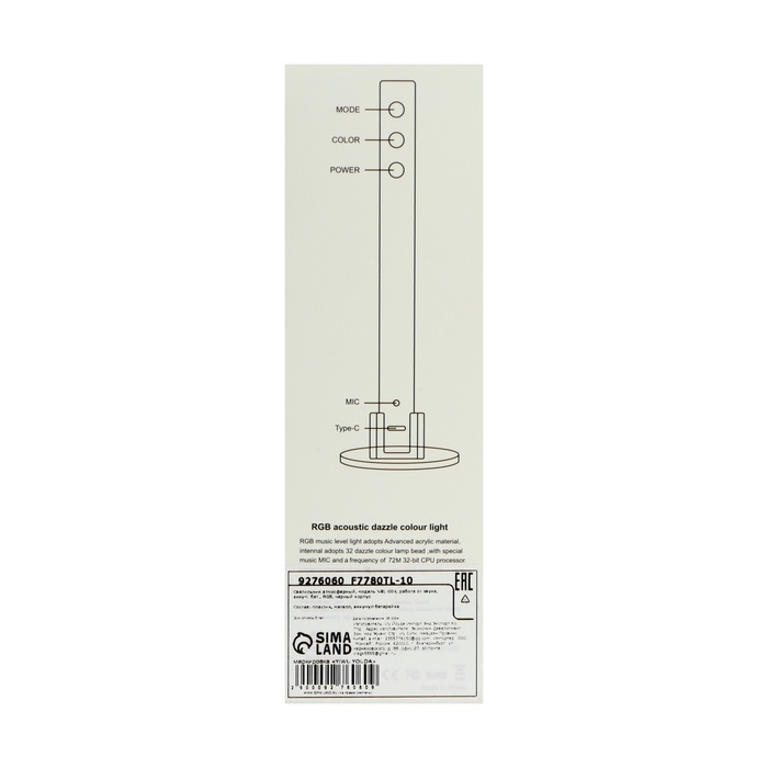 Светильник атмосферный NSL-004, работа от звука, аккум. бат., RGB, черный корпус