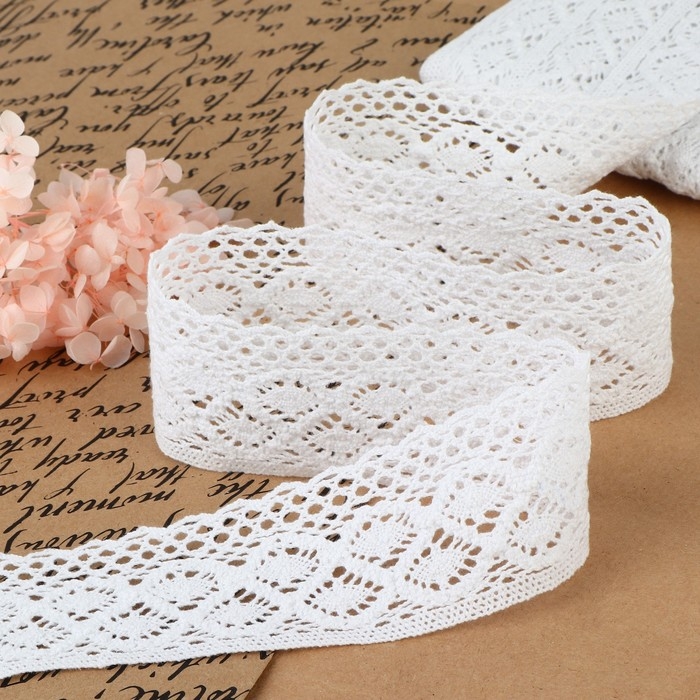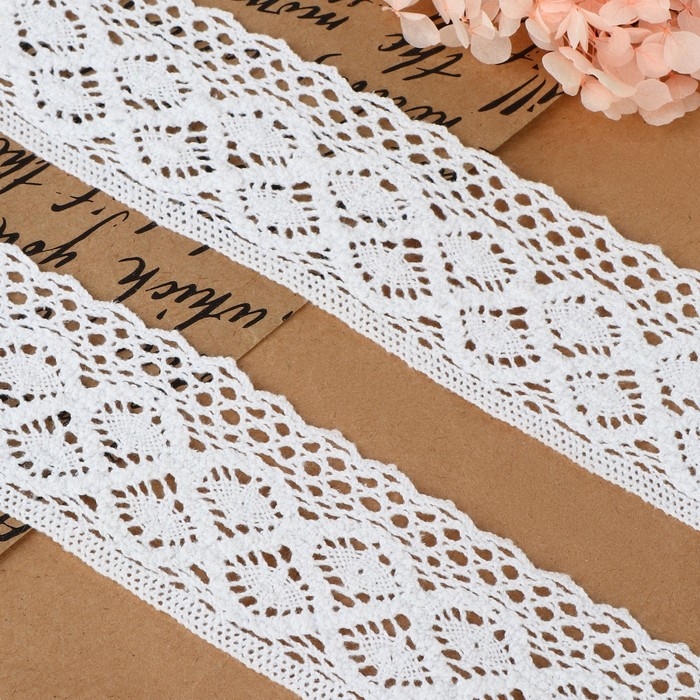 Кружево гипюровое, 35 мм × 9 ± 0,5 м, цвет белый