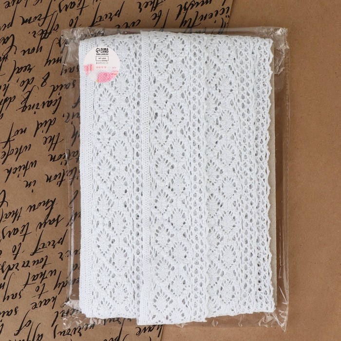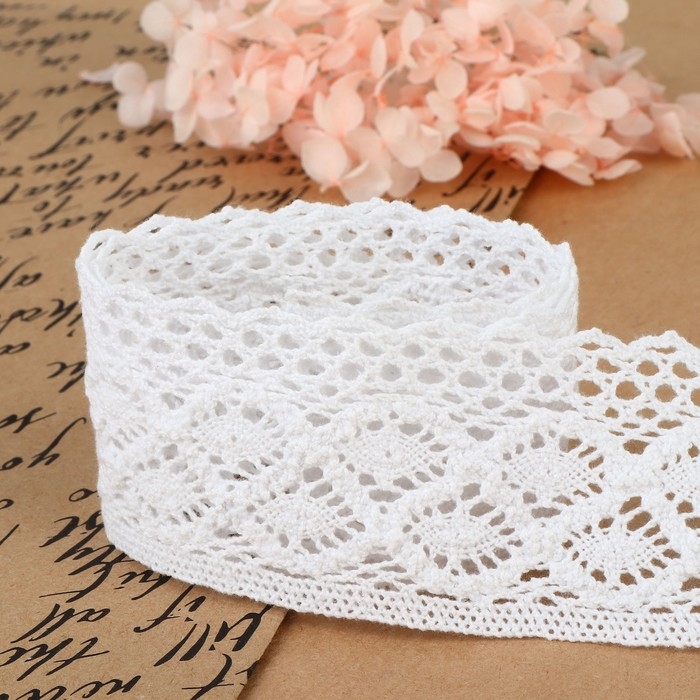 Кружево вязаное, 50 мм × 10 ± 1 м, цвет белый