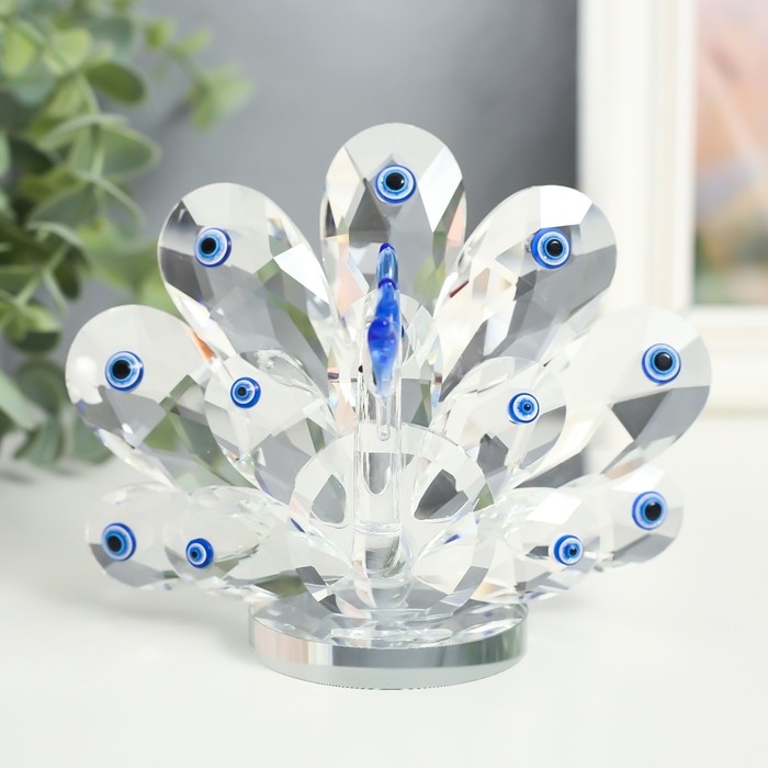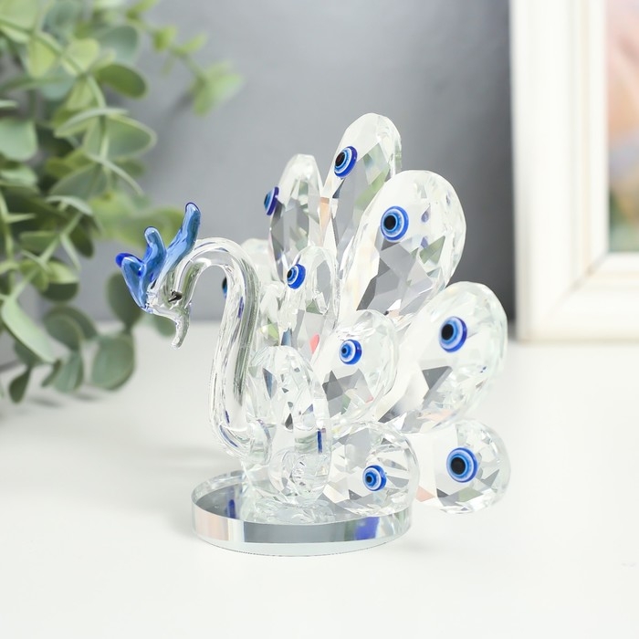 Сувенир стекло "Павлин с глазками от сглаза" 7х13х10,5 см