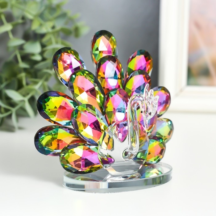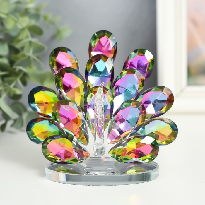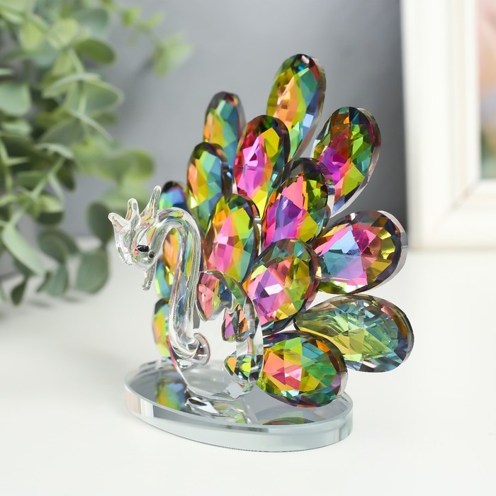 Сувенир стекло "Павлин с распушившимся хвостом" голография 8х11х12 см