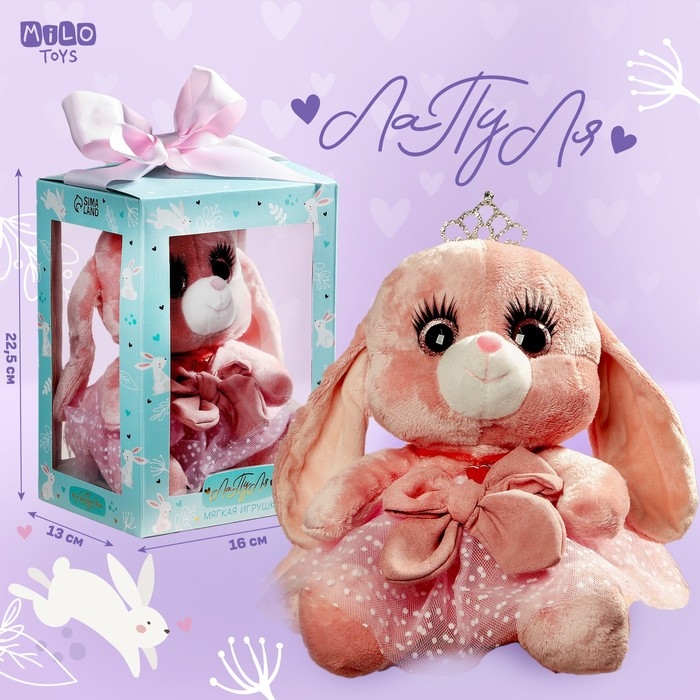 Мягкая игрушка «Зайка Ла-Пу-Ля в платье с короной», цвет розовый, 20 см