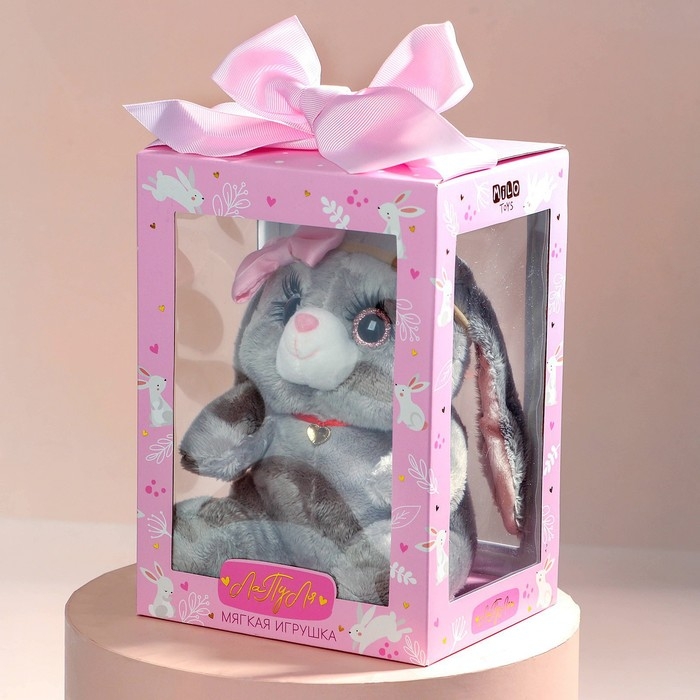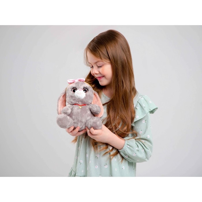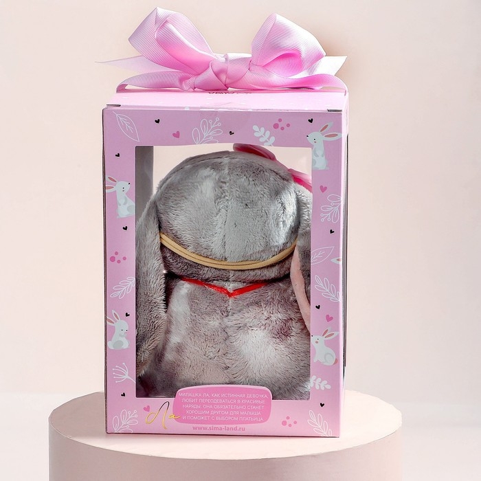 Мягкая игрушка «Зайка Ла-Пу-Ля в платье с повязкой бант», цвет серый, 20 см